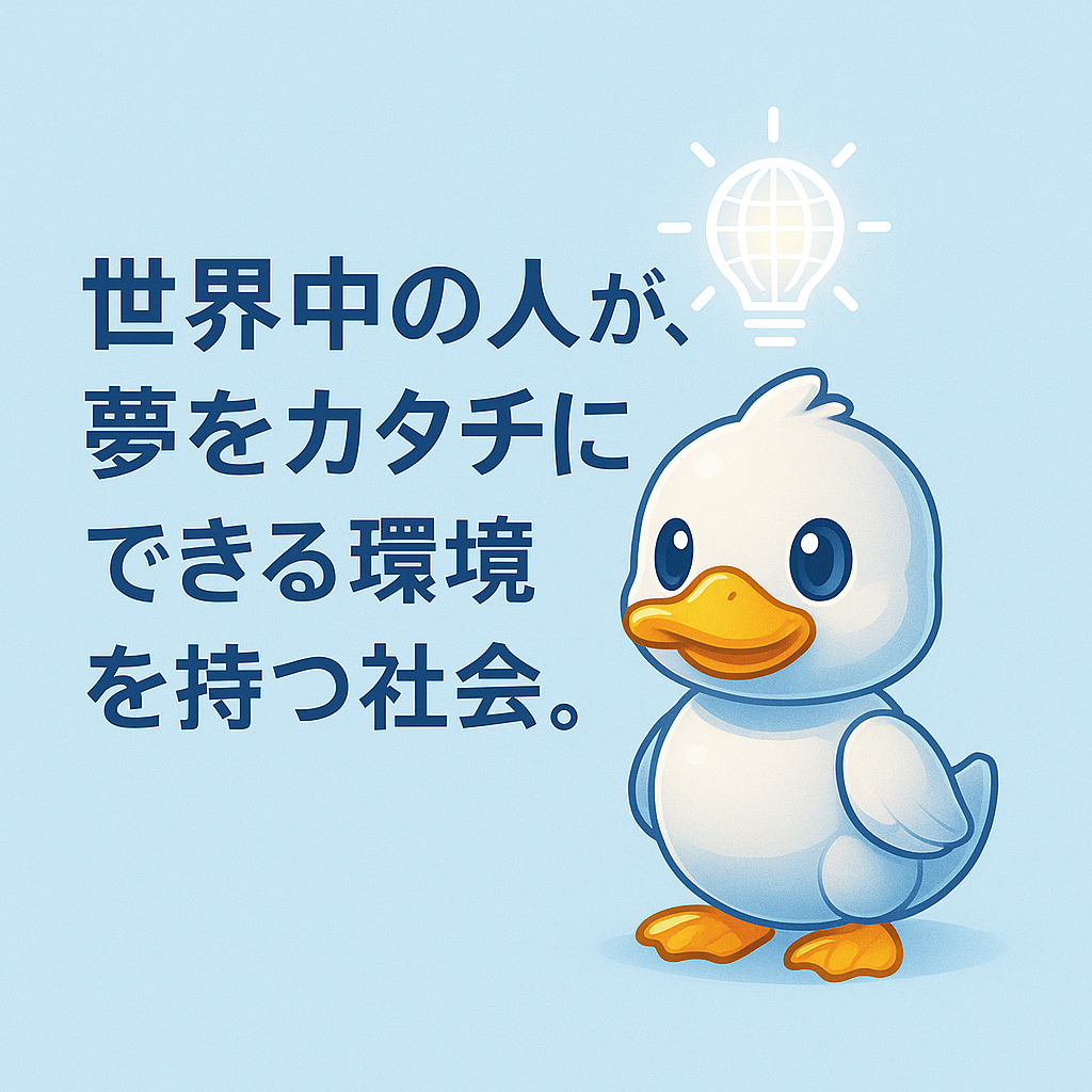 「世界中の人が、夢をカタチにできる環境を持つ社会。」